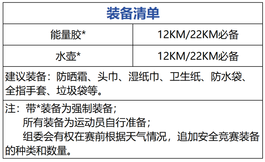 2、运动员必须佩戴组委会统一配发的号码布、且号码必须一致;号码布不可自行裁剪,否则不予参赛。