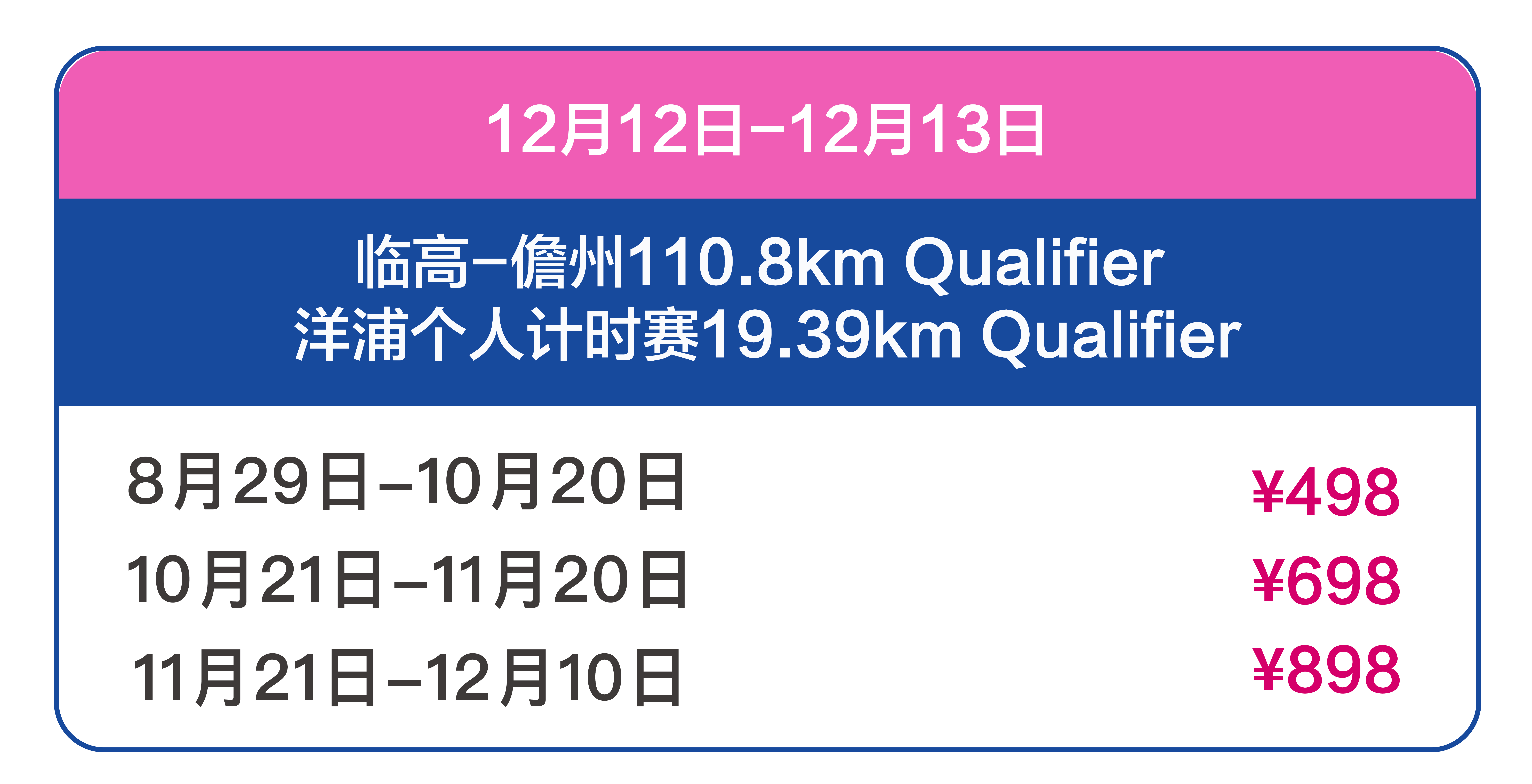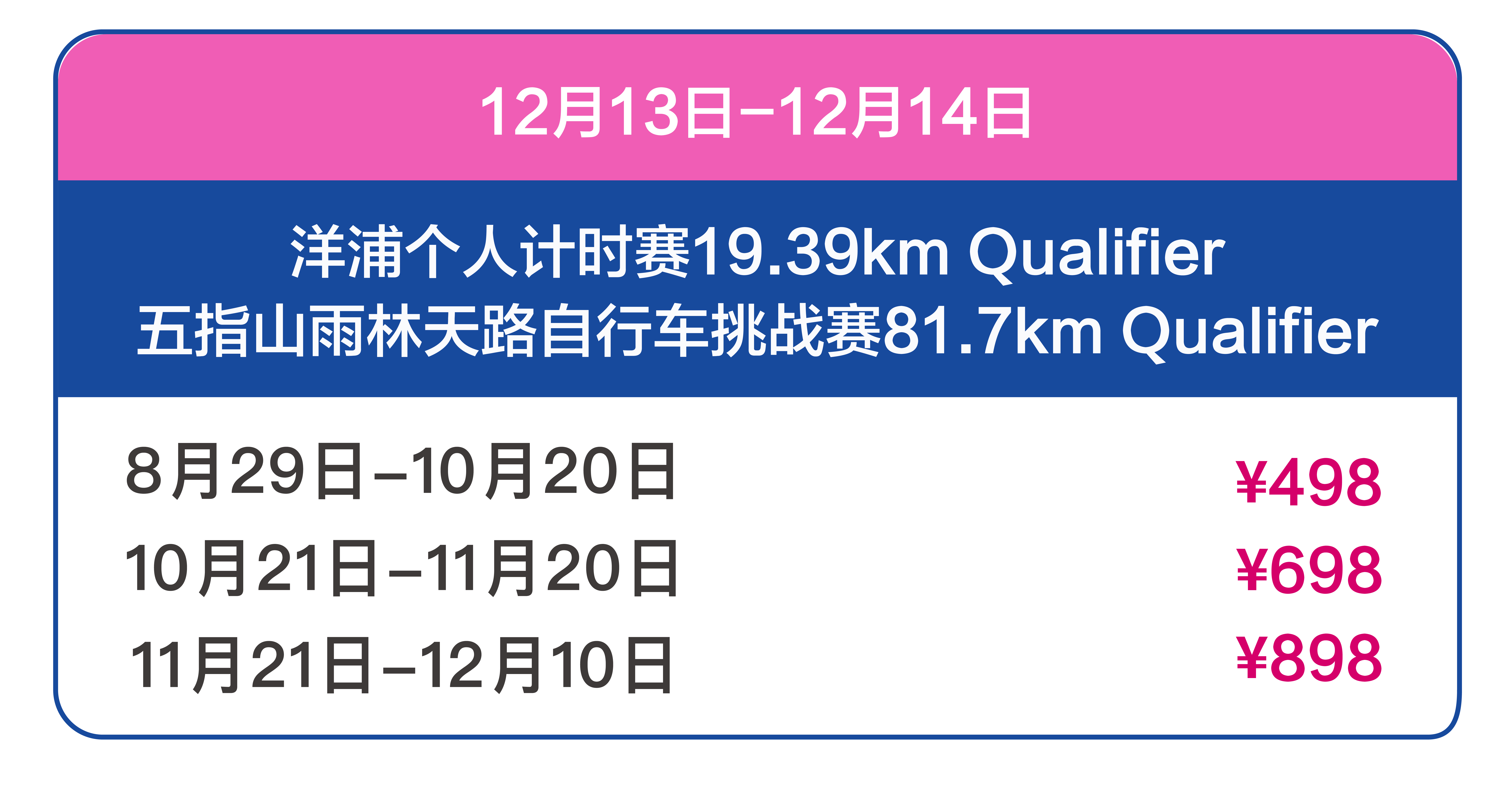 号码布、号码牌应按要求使用。主办方提供的号码仅供选手使用,不得有任何更改。请确保计时芯片正确安装到您的自行车上。