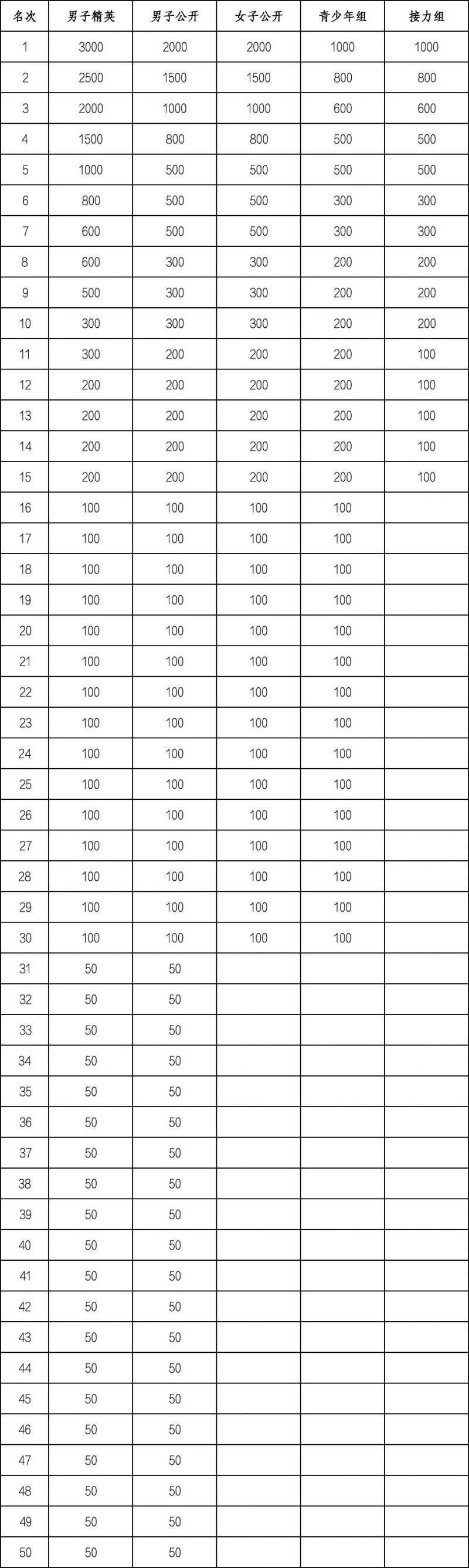 (二)最终名次以赛会成绩为准。若成绩相等,则名次并列,无下一名次。