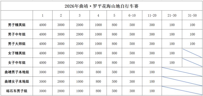 (3)曲靖本地男子组或曲靖女子本地组不足50人,根据年龄分别合并至男子精英、男子中年、男子大师组或女子组精英、女子中年组。