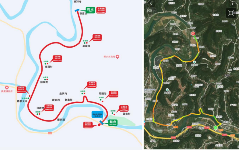赛道位于盐亭高渠镇,起点从龙凤谷大桥至终点章邦小草园总里程11公里,最高海拔365米,最低海拔342米。赛道特色:全程旅游公路,沿途风景优美,犹如人在画中游。