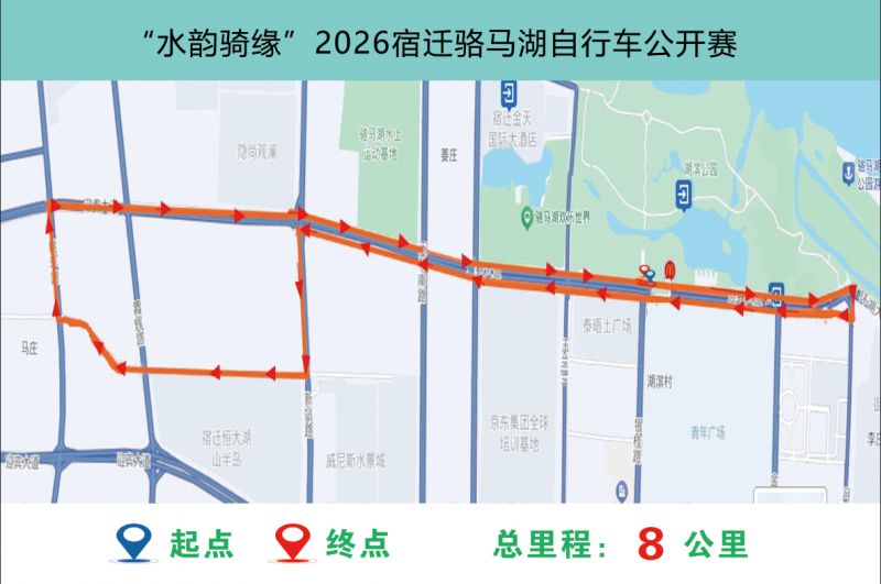 比赛地点:江苏 宿迁 宿迁市湖滨新区迎春大道与银桂路湖畔渔歌