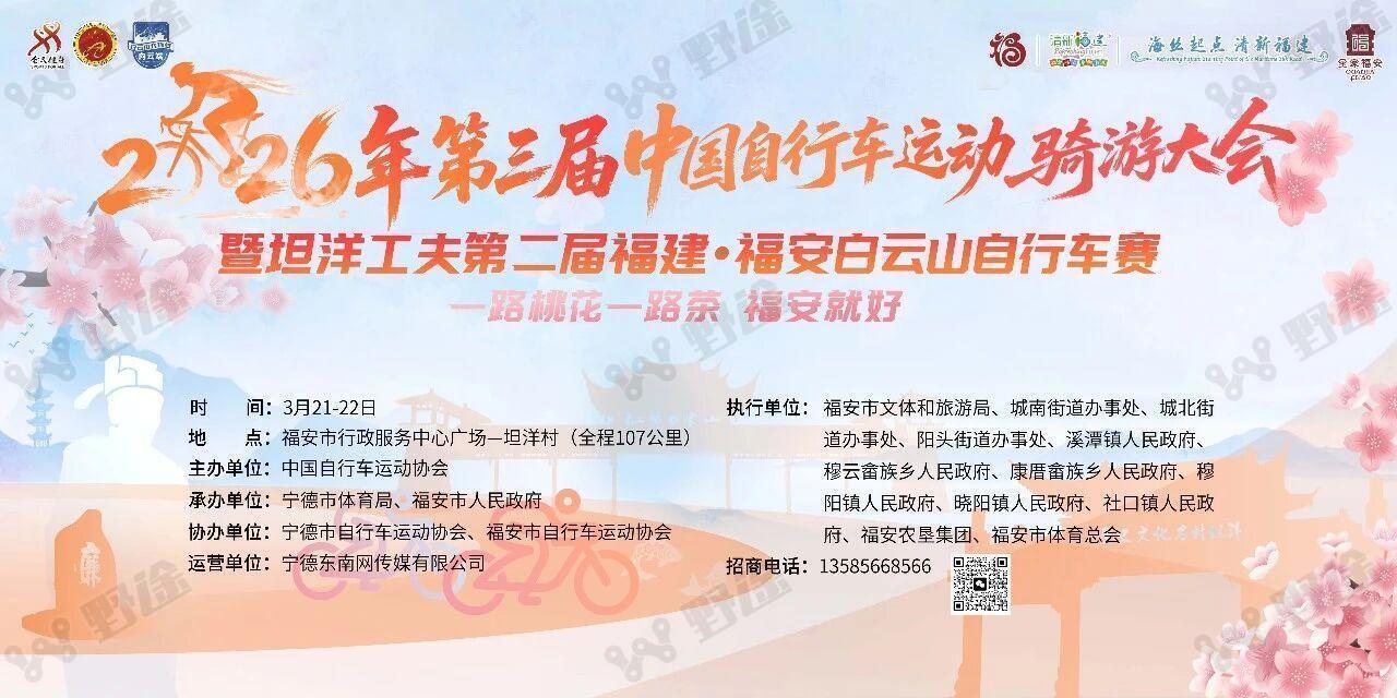 3月22日 9:00 2026第三届中国自行车运动骑游大会荣誉骑游出发仪式;