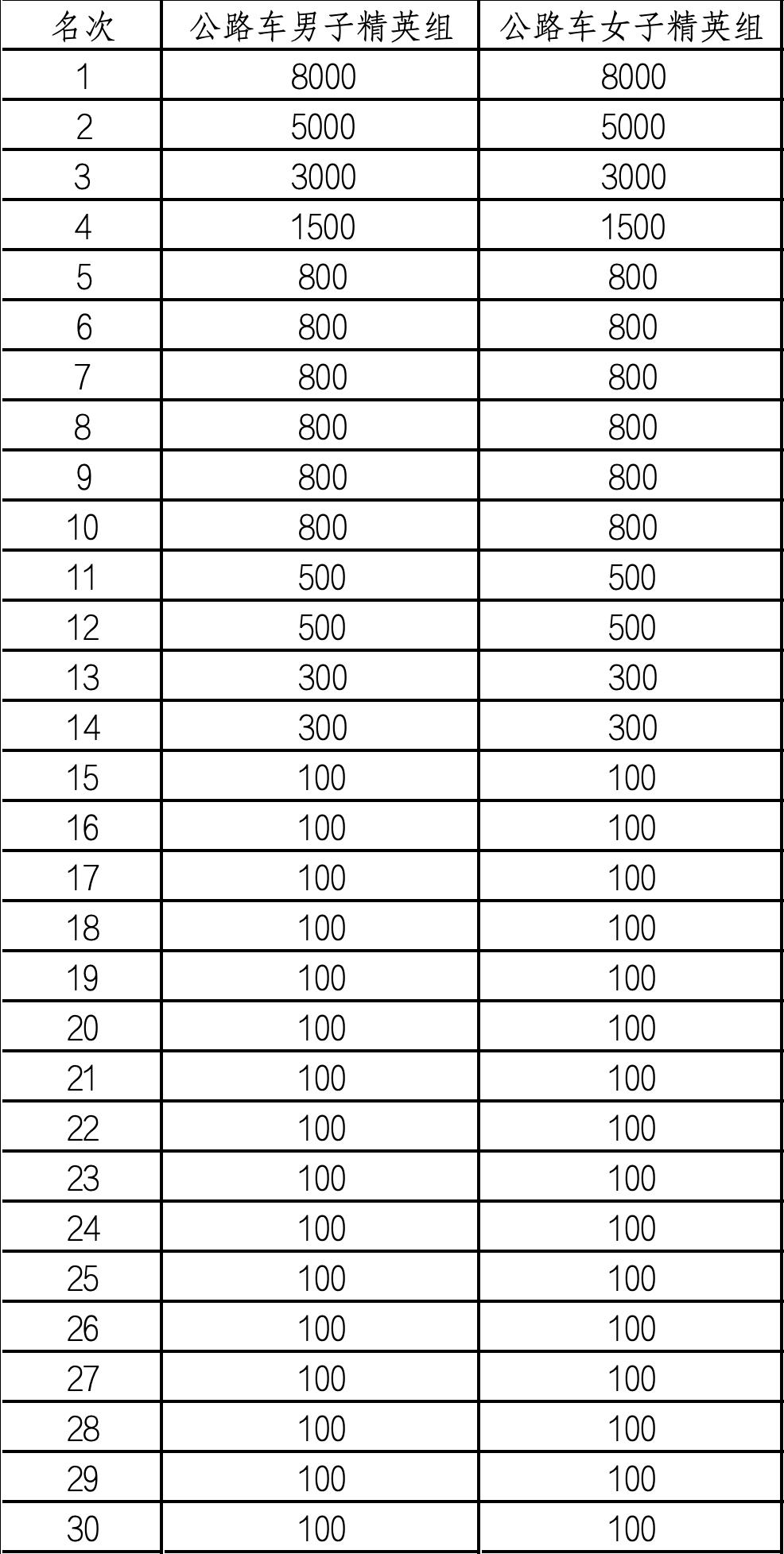 1.男子公路自行车组:报名费100元