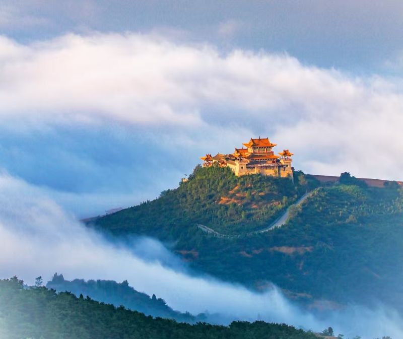 山顶有七佛寺,为二进寺院,后院内有七层六面汉白玉佛塔一座。整个寺院高凌云间,远望近观,宏伟壮观。每年的二、八月间,当一轮红日从七佛寺升起,犹如佛光四射,红日、白塔、青砖、绿顶,甚为壮观,堪为高平市内一大景观。
