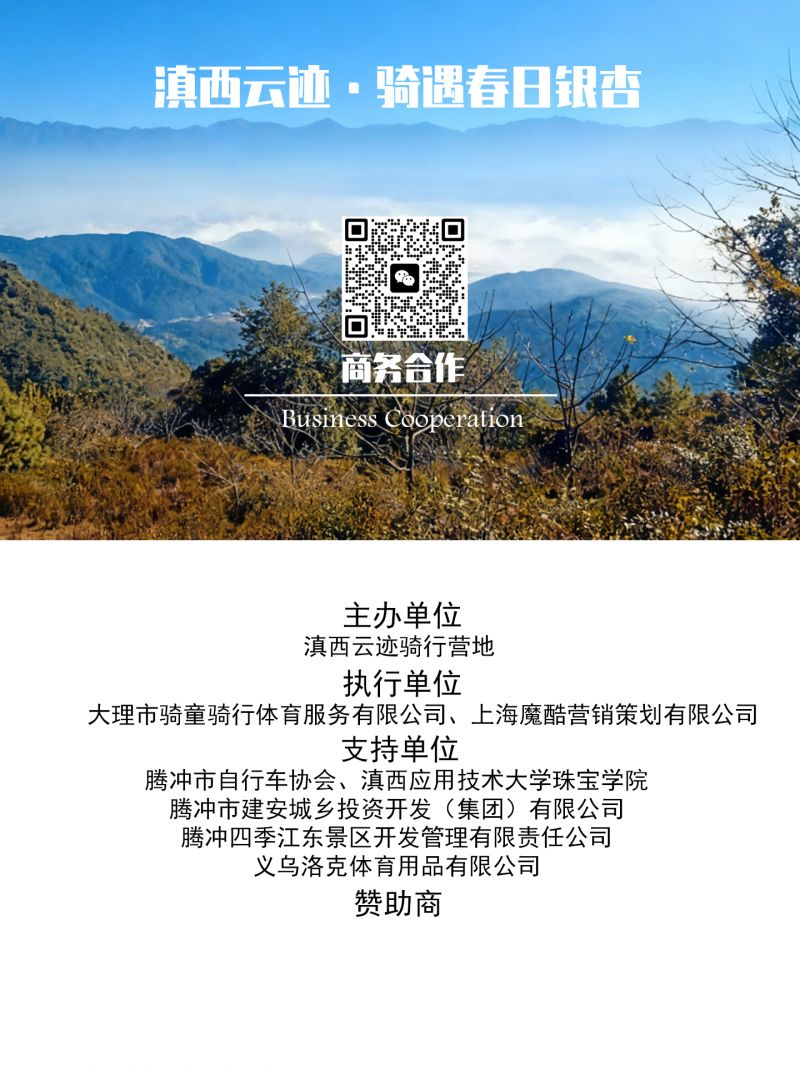 支持单位:滇西应用技术大学珠宝学院、江东村村民委员会、腾冲市自行车协会、腾冲市建安城乡投资开发(集团)有限公司、腾冲四季江东景区开发管理有限
