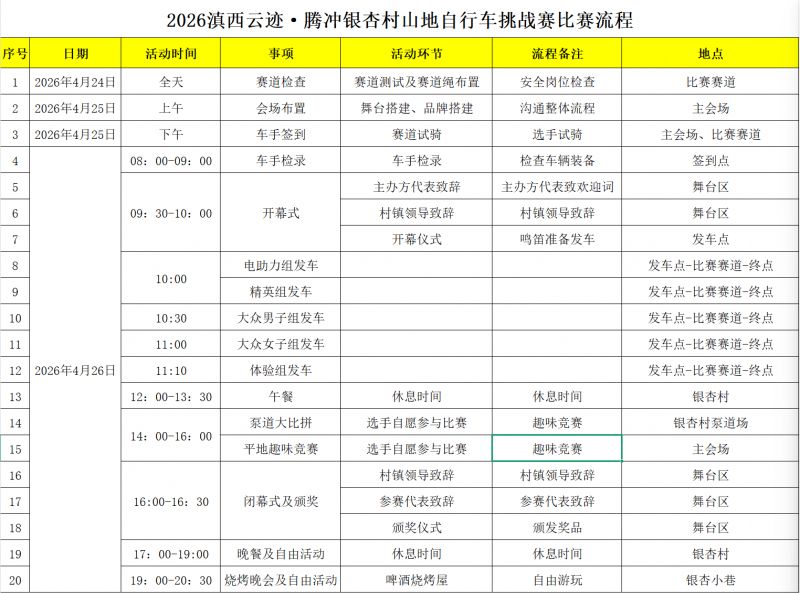 2026 滇西云迹腾冲银杏村山地自行车挑战赛