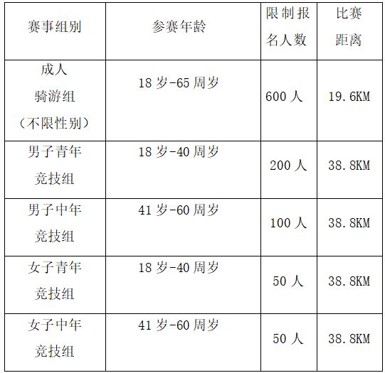(一)本站比赛设置竞技组(男子青年组、男子中年组、女子青年组、女子中年组)。竞技组电子计时芯片全程计时,产生本站比赛各组别的个人公路积分。