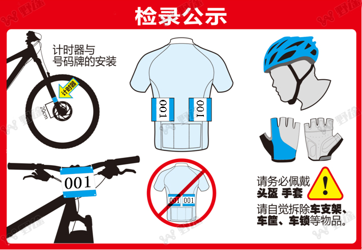 运动员本人佩戴好头盔,号码牌、号码簿,到检录处检录,否则不予参赛。 |
