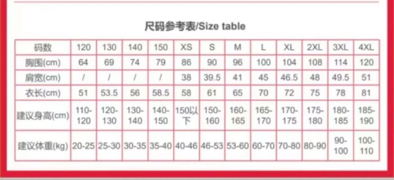 15、越野赛衣服尺码表(填写报名时务请必看尺码表)