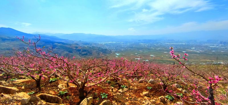 这里桃花肆意绽放,花瓣舒展,展露娇俏花蕊;