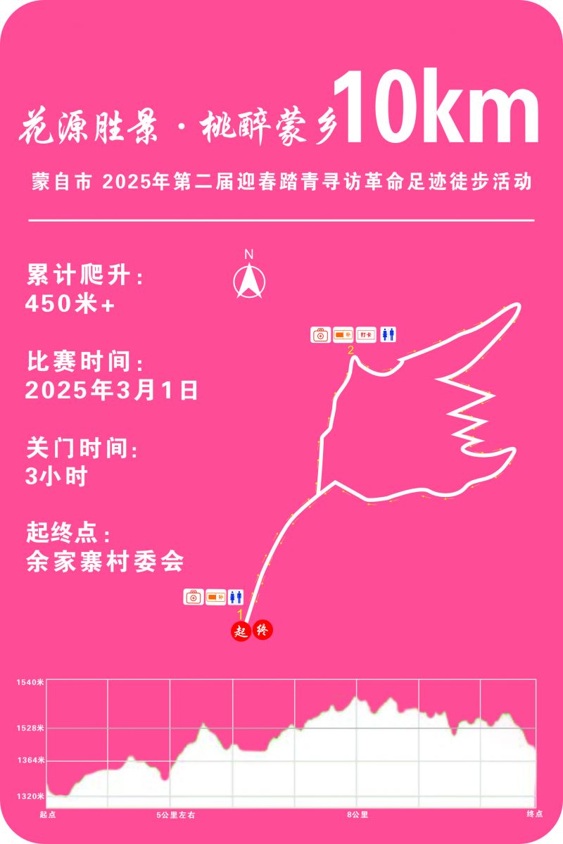 热爱运动、热爱历史的您,千万不要错过这次与春天、与历史亲密接触的机会。让我们在这个美好的3月,在蒙自的春天里,踏寻革命足迹,邂逅烂漫桃花,共同书写春日的美好回忆!愿我们在攀登的过程中,不断挑战自我,超越自我,向着更高的目标前进。