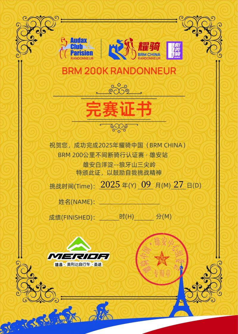 2025 耀骑雄安 BRM 长距离耐力骑行认证挑战——雄安白洋淀--狼牙山三尖岭200挑战赛