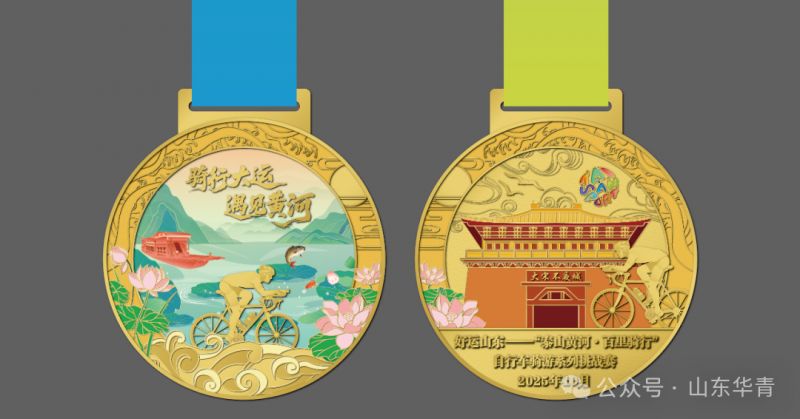 (1)好运山东——泰山黄河·百里骑行之“骑行大运 遇见黄河”文创奖牌。