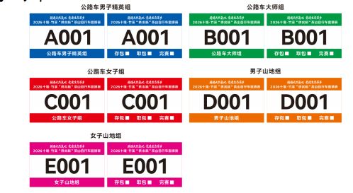 山地和公路号码布需用别针别在腰背两侧,请勿遮挡号码及存包、取包、奖牌区域。运动员需凭号码布存、取参赛包;完赛后需凭号码布在终点领取完赛奖牌。