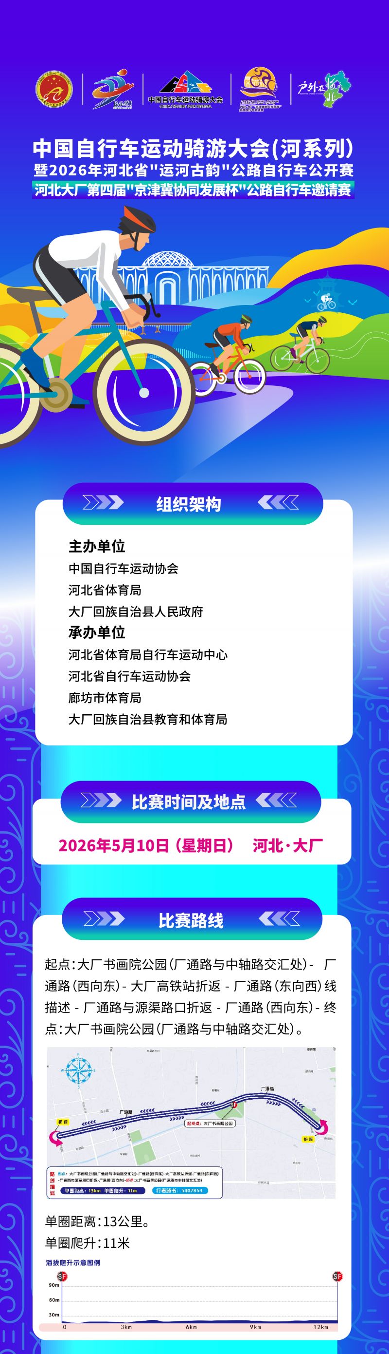 主 办 方: 中国自行车运动协会 河北省体育局 大厂回族自治县人民政府
