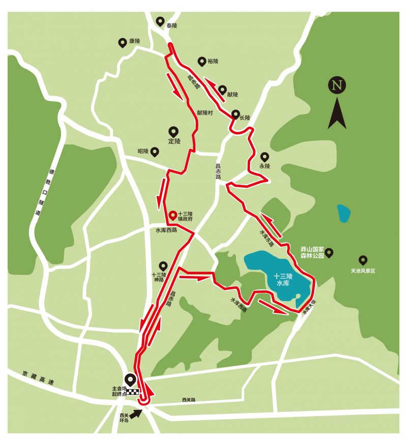 悦荟湾→西关环岛掉头→大红门 →神路→南新村路口→大坝→北新村→德陵→永陵→景陵→长陵→泰陵掉头→定陵→昭陵→十三陵镇政府→胡庄路口→神路→悦荟湾