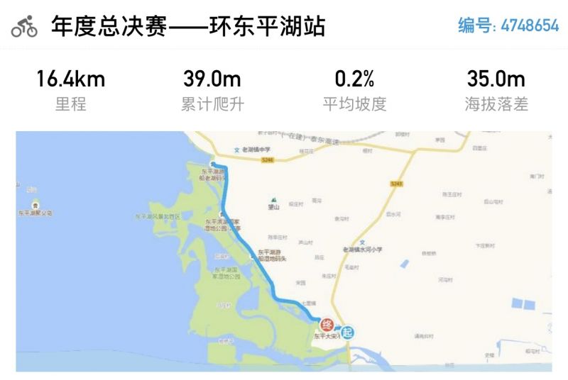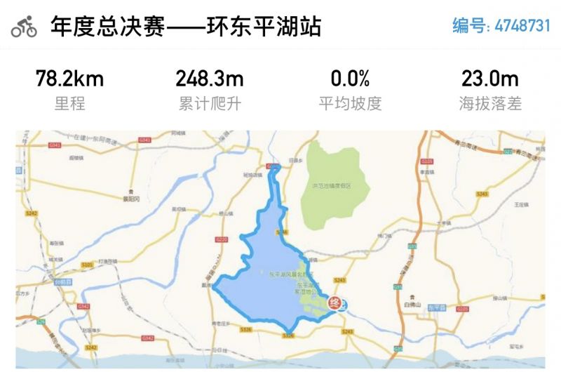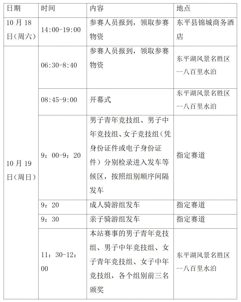 (3)本站赛事全程距离为78.2公里,顺时针环东平湖一周。