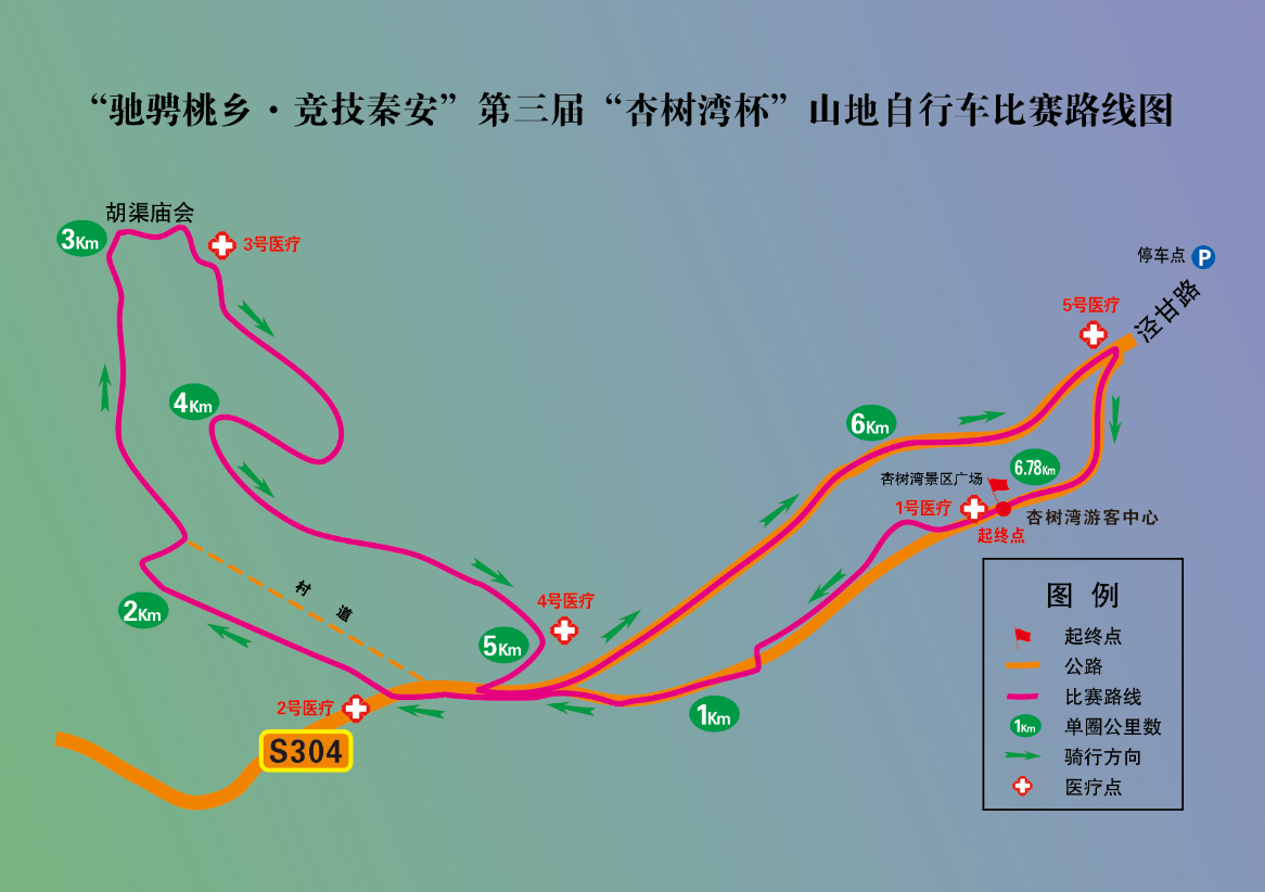 “驰骋桃乡竞技秦安”第三届“杏树湾杯”山地自行车比赛采用排名制,奖励前二十名男运动员、前十名女运动。按要求骑完全程的比赛选手赛后可到游客中心领取完赛奖牌。