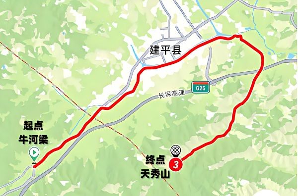 牛河梁国家考古遗址公园,沿红山大道经小平房村至天秀山森林公园,比赛里程:29公里。