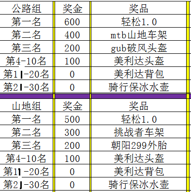 5、比赛为大组出发,终点名次根据运动员通过终点的先后顺序判定。终点成绩为运动员完成比赛通过终点线时所用的时间。