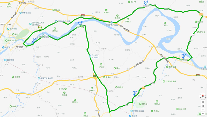 1、环长江骑行挑战组线路:临港—南溪区—江安县—长宁县—翠屏区—叙州区—临港,全程约150KM