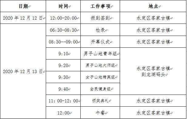 八、赛事路线:永定客家古镇到龙湖大桥(码头),全程20公里,爬升高度114米。