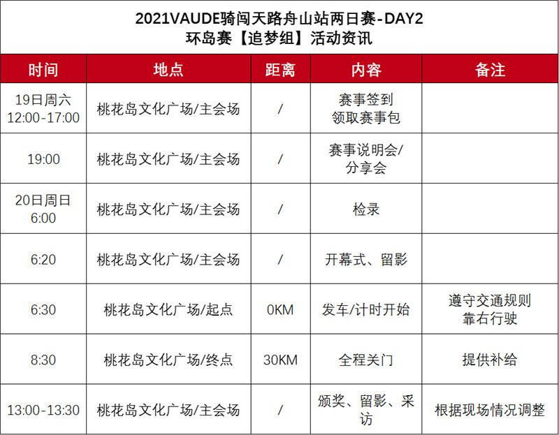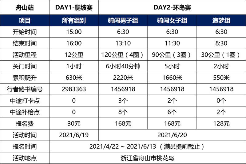 2、出入岛船班航线:宁波郭巨-桃花岛因桃花船班有限,组委会采用包船的形式为比赛选手提供额外的船班进出岛。更多信息下期舟山站推文推出。