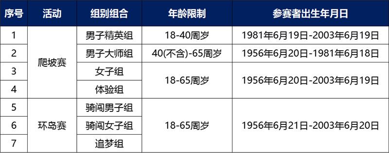 以下为各组别年龄要求:
