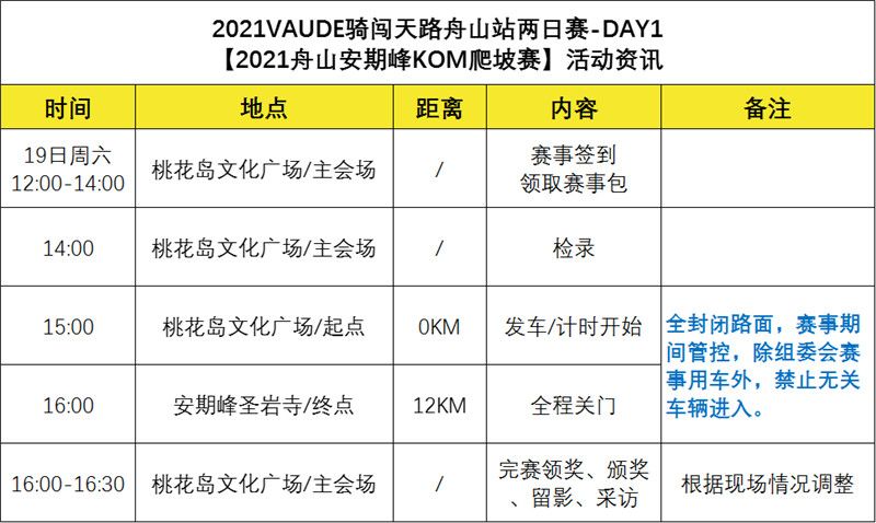 活动名称:2021VAUDE骑闯天路舟山站两日赛暨舟山安期峰KOM爬坡赛