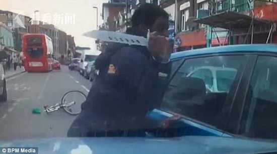 伦敦街头遭遇路怒 骑车男子挥舞10英寸大刀砍人